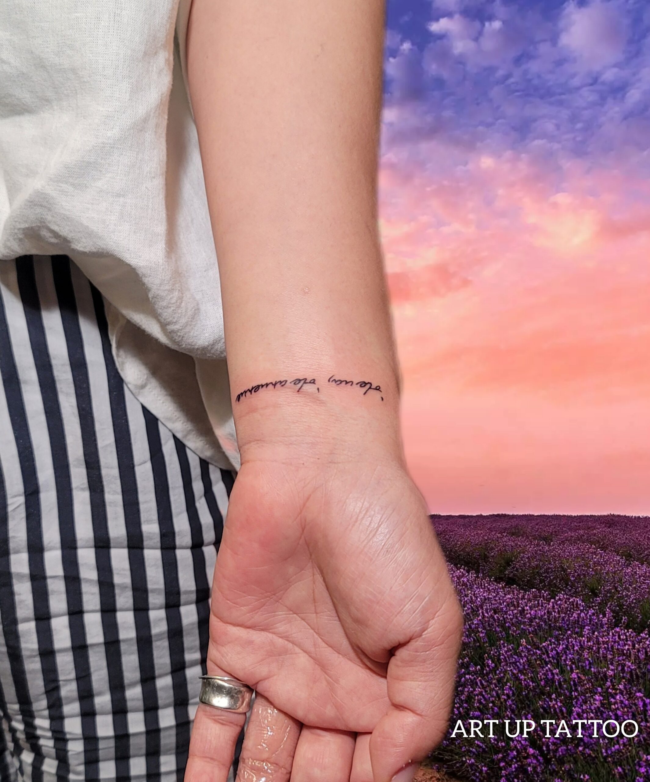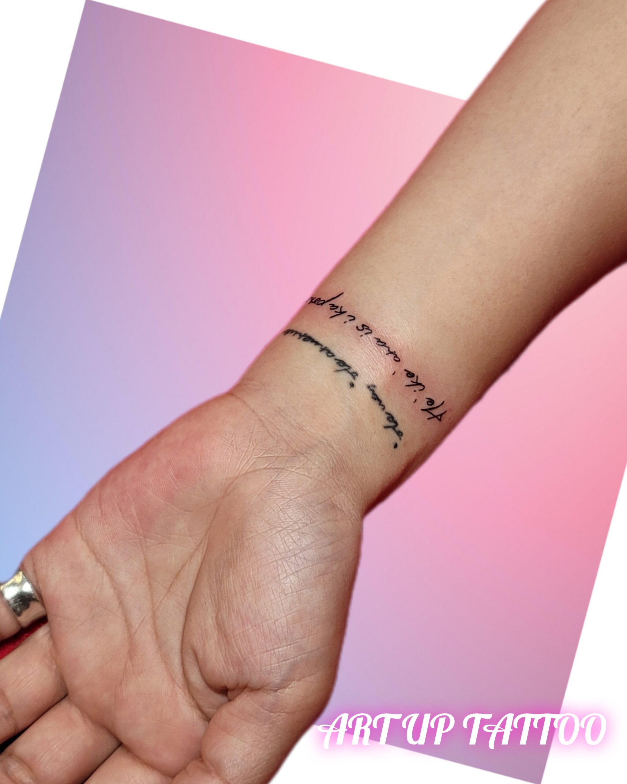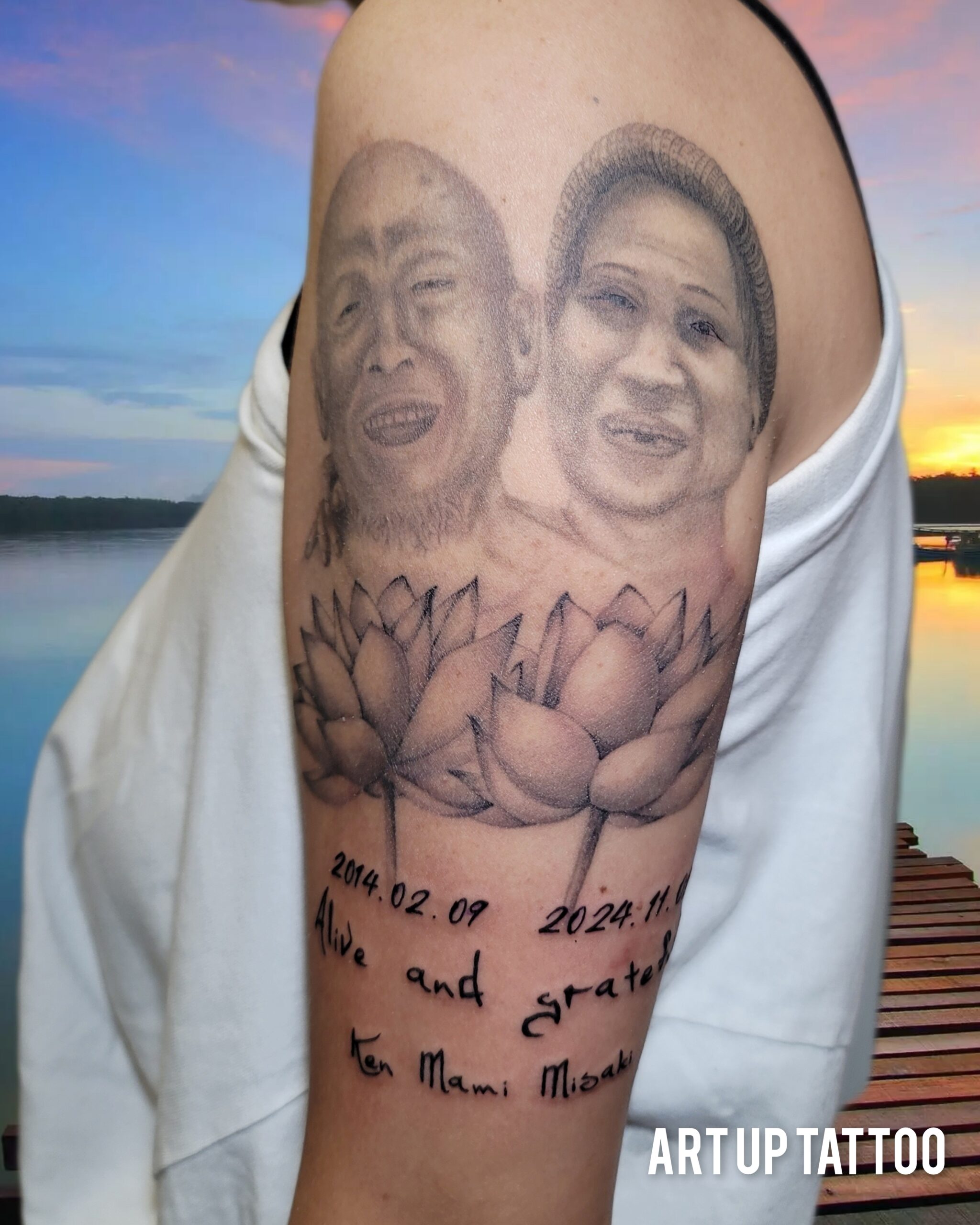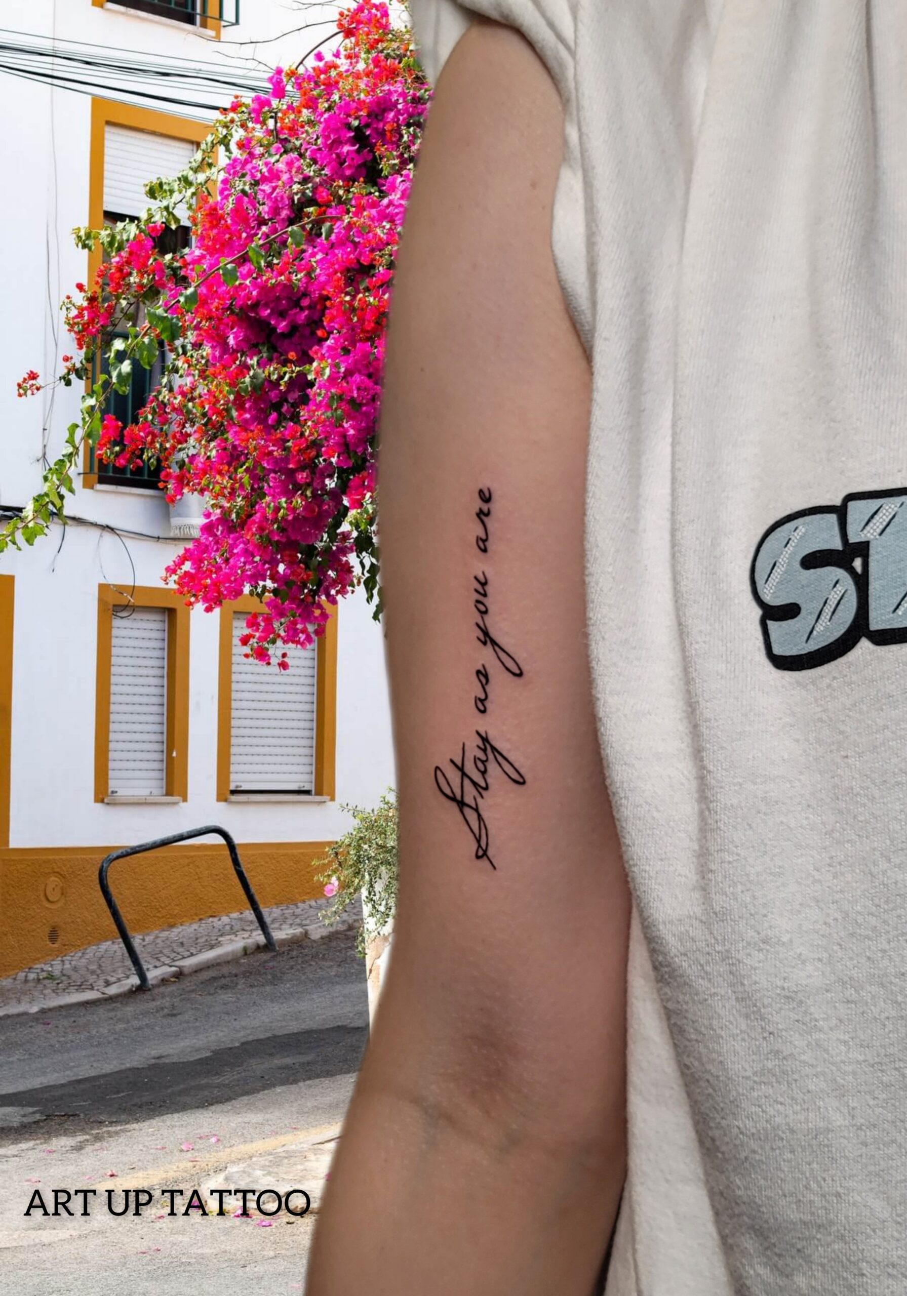 レタリングタトゥーを入れたいけど、どんな文章にすればいいのかわからない。皆さんはどんな文章を入れるのですか?と良く聞かれます。一番多いのは、自分への励ましや目標、家族への想いを綴ったレタリングタトゥーです。単語で一言にまとめるお客様もいらっしゃいます。その次に多いのは、有名人や偉人たちの格言や名言を英文にしたレタリングタトゥーです。レタリングタトゥーに、想いのあるものや花などの挿絵を添えたり、周りをピンスト風のラインで飾ったりするとオリジナリティに富んで他にはない自分だけのタトゥーが完成します。デザインは全てオリジナルの一点物です。入れたいイメージや雰囲気が決まりましたら先ずはカウンセリングにご来店ください。カウンセリングは無料です。